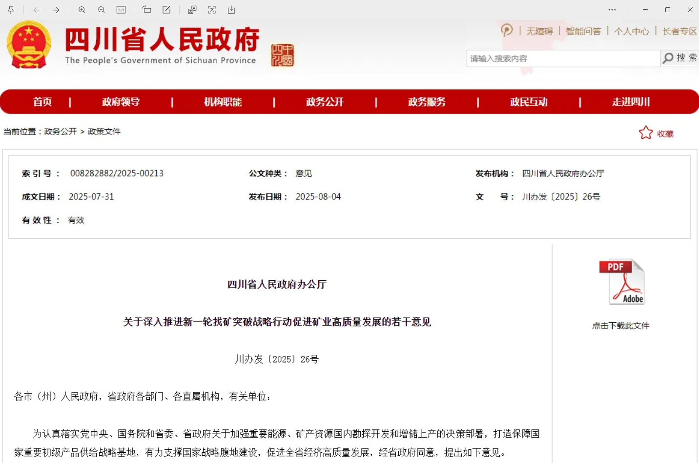 【转发】四川省人民政府办公厅印发《关于深入推进新一轮找矿突破战略行动...